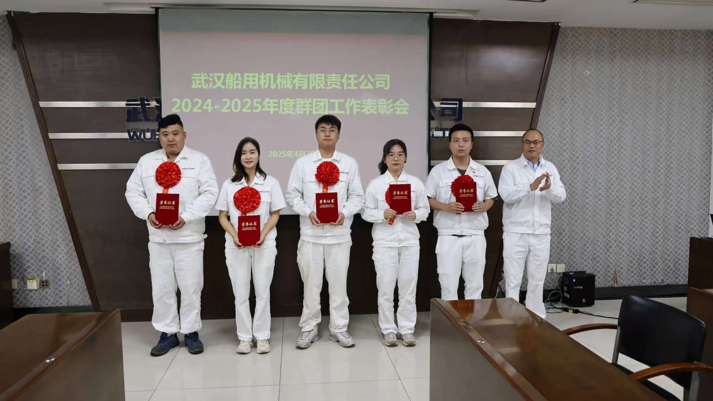 4月29日,中船集團武漢船機召開2024-2025年度群團工作表彰會,傳達學習習近平總書記在慶祝中華全國總工會成立100周年暨全國勞動模范和先進工作者表彰大會的講話精神,對公司工會、共青團先進集體和個人代表進行表彰。公司黨委委員、總會計師、工會主席陳世龍出席會議。