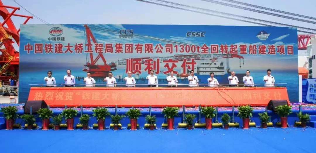 5月28日,中船集團(tuán)武漢船機(jī)參建的中鐵建大橋局“鐵建大橋起2”1300噸全回轉(zhuǎn)起重船在青島海西重機(jī)碼頭順利交付。